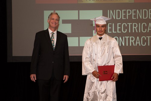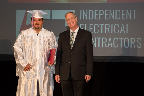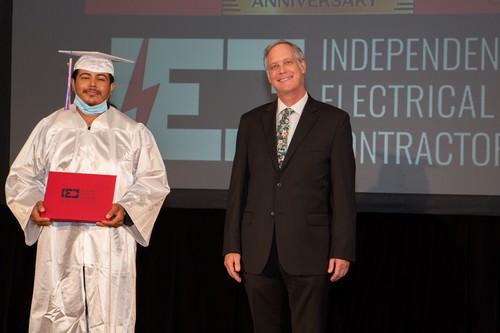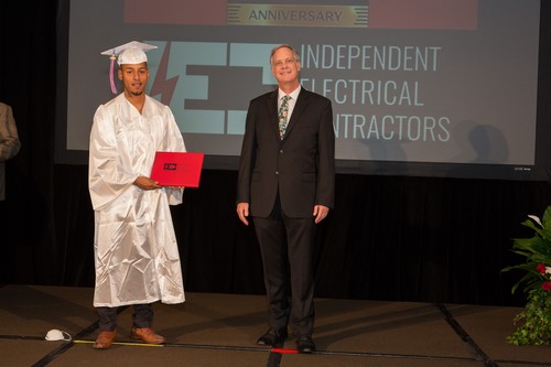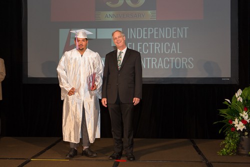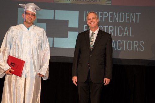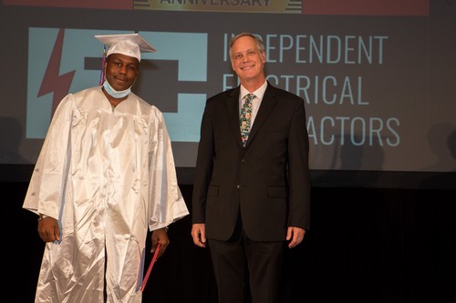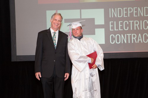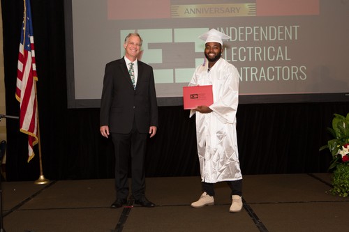 El evento comenzó a las 6:00 p.m. con una bienvenida en el salón de baile Evergreen, por parte del Presidente de la Junta Directiva de IEC Atlanta, Bob Harmon de Harmon Electric, mientras que simultáneamente el Director Ejecutivo de IEC, Niel Dawson, dio la bienvenida en el salón Stone Mountain. Este evento también fue transmitido en vivo en el canal de YouTube de IEC Atlanta/Georgia para aquellos amigos y familiares que no pudieron asistir. Dado que este es el 50th En la graduación anual del IEC, se contó con la presencia de otros oradores invitados para hacerla aún más especial. Los graduados recibieron mensajes conmovedores de la oradora principal, la Sra. Candy Branhm, Directora General de Branhm Electric, Inc. y Presidenta de la Junta Nacional del IEC, Bill Bledsoe, Director General de Wisco Pen Electric, y Betsy Rich-Reed, Presidenta de Ritch Electric. Todos los asistentes disfrutaron de una cena, de la actuación de la teclista y vocalista Gwen Hughes y de la entrega de premios a los graduados con mejor rendimiento durante su paso por el IEC.