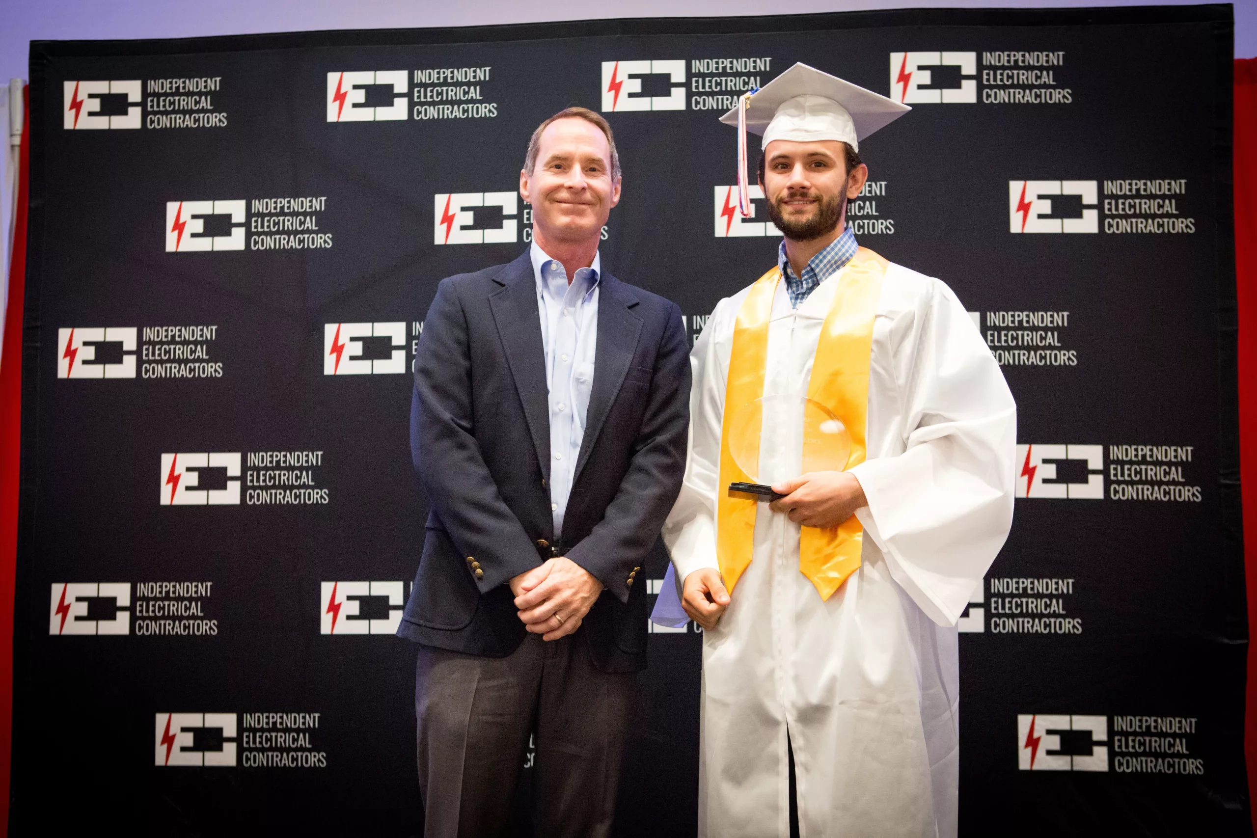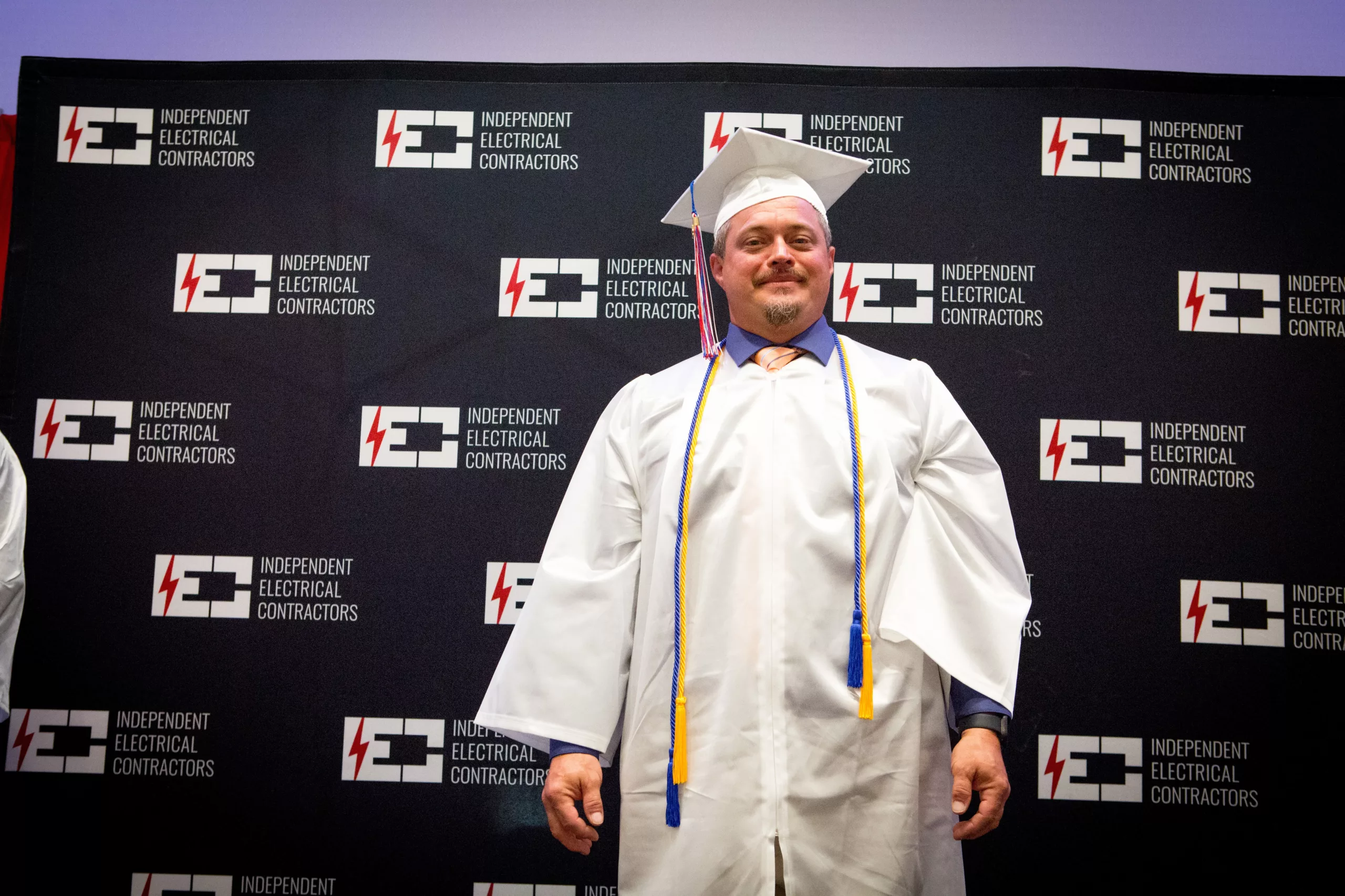The morning began with a welcome from IEC Atlanta Board President, Darren Lodge of Excel Electrical Technologies, live music from keyboard/vocalist Gwen Hughes, and a moving acapella Star-Spangled Banner by Program Quality Coordinator, John Dickerson. Top apprentices received awards and recognition for going above and beyond, and each apprentice had their moment as they crossed the graduating stage.